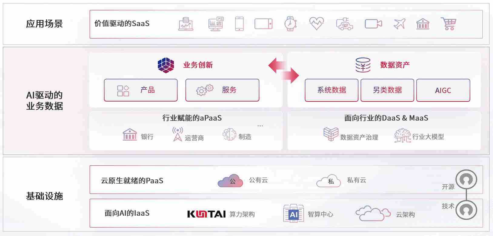数字时代,,,围绕企业数字化转型的关键要素,,z6尊龙数码开创性的提出数云融合战略和技术体系框架,,着力在云原生、、数字原生、、、AI原生和信创产业上架构产品和服务能力,,,为处在不同数字化转型阶段的快消零售、、、、汽车、、、金融、、、、医疗、、政企、、、、教育、、运营商等行业客户提供泛在的敏捷IT能力和融合的数据驱动能力,,构建跨界融合创新的数字业务场景和新业务模式,,,,助力企业级客户建立面向未来的核心能力和竞争优势,,全面推动社会的数字化、、、、智能化转型升级。。